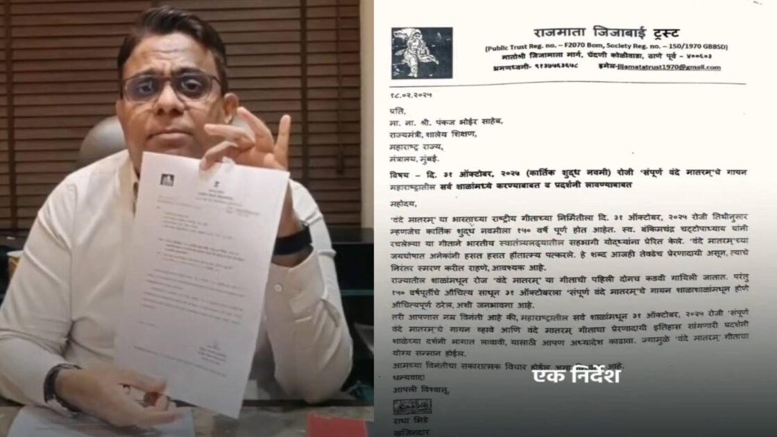 تعلیمی وزیرِ مملکت پنکج بھوئیر کو کسی تنظیم کے خط کے بعد محکمۂ تعلیم کی جانب سے فوراً تمام اسکولوں کو حکم دینا کہ وہ “وندے ماترم” گائیں . یہ مہاراشٹر جیسے ترقی یافتہ صوبے کے بہتر نظم و نسق کی مثال نہیں ہے۔