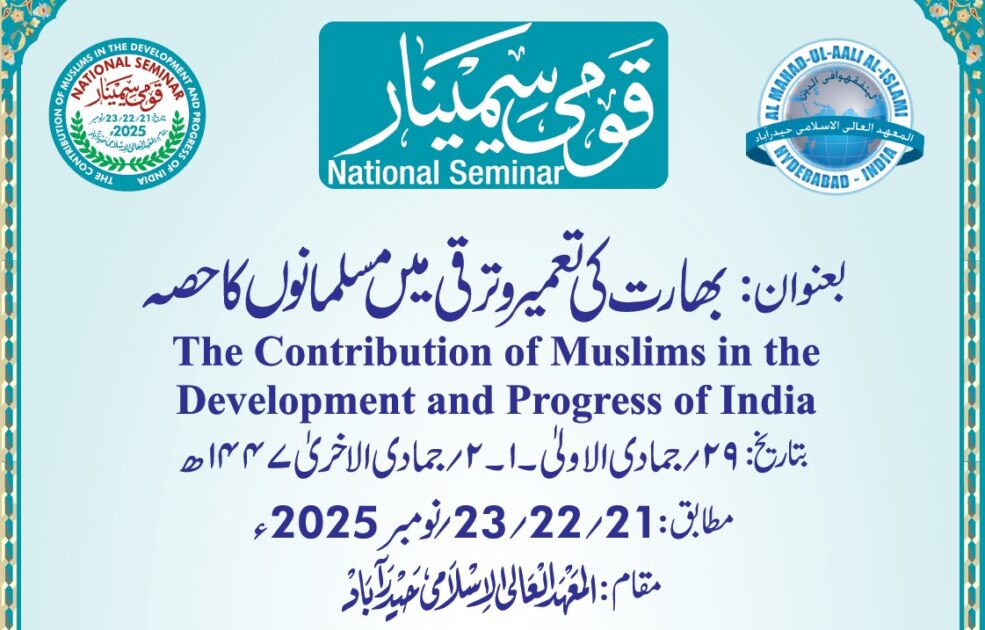 حیدرآباد (دکن فائلز) حیدرآباد کے معروف دینی و علمی ادارے المہعد العالی الاسلامی کی جانب سے ایک عظیم الشان تین روزہ قومی سیمینار کا اعلان کیا گیا ہے، جس کا عنوان : ’’بھارت کی تعمیر و ترقی میں مسلمانوں کا حصہ‘‘ ہے۔