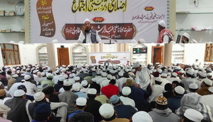مسجدِ نور و مدرسہ مصباح الہدیٰ کاماریڈی میں منعقدہ ایک روزہ اصلاحی و تربیتی اجتماع سے خطاب کرتے ہوئے حضرت مولانا مفتی عبدالرشید قاسمی مظاہری صاحب دامت برکاتہم العالیہ نے اللہ کی ذاتِ عالی پر یقین، گناہوں سے اجتناب، حضرت محمد مصطفیٰ صلی اللہ علیہ وسلم کی محبت و عقیدت و عظمت کے ساتھ اتباعِ سنت اور درود شریف کی کثرت پر تفصیلی خطاب فرمایا۔