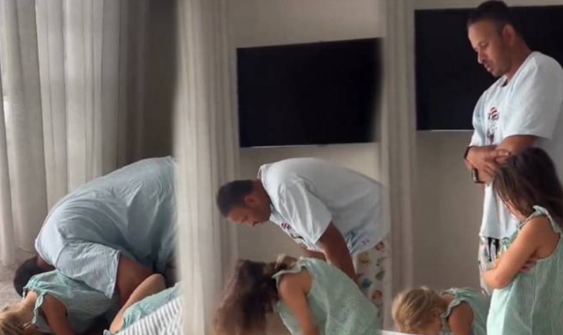 (تصویر میں عثمان خواجہ نماز ادا کررہے ہیں جبکہ ان ٹی دو بیٹیوں کو بھی دیکھا جاسکتا ہے۔)