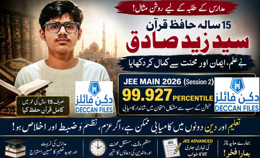 دینی و دنیاوی تعلیم کا عظیم الشان امتزاج: حافظ سید زید صادق کی مشکل ترین امتحان ’جے ای ای مینس‘ میں شاندار کامیابی، مسلم طلبا کےلئے روشن مثال