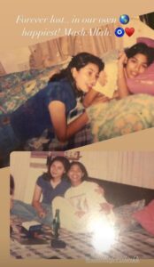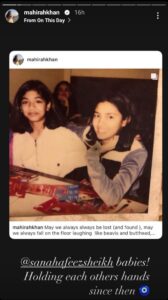 ماہرہ خان نے اب سماجی رابطے کی سائٹ انسٹاگرام اسٹوریز پر پرانی فوٹو البم میں محفوظ کی گئی اپنی تصاویر شیئر کیں جن میں وہ اپنی دوستوں اور رشتے داروں کے ساتھ موجود ہیں۔