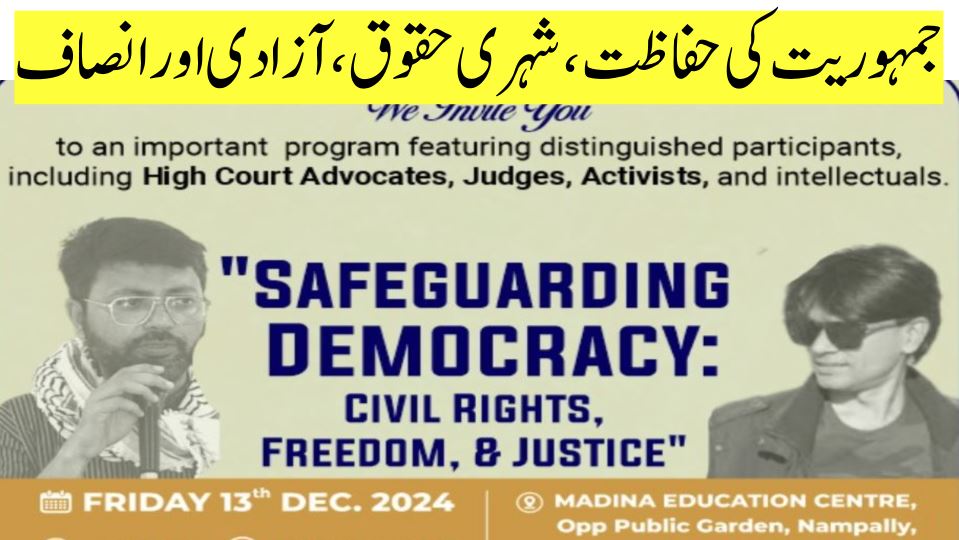 حیدرآباد (پریس نوٹ) ایسوسی ایشن فار پروٹیکشن آف سول رائٹس (APCR) اے پی سی آر تلنگانہ چیاپپٹرکے زیر اہتمام” جمہوریت کی حفاظت، شہری حقوق، آزادی اور انصاف” کے عنوان پر 13 ڈسمبر 2024،بروزجمعہ بوقت شام ساڑھے چھ بجے بمقام نہرو آڈیٹوریم،مدینہ ایجوکیشن مزید پڑھیں