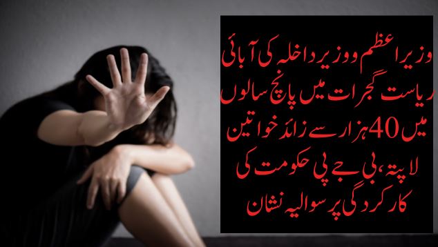 نیشنل کرائم ریکارڈ بیورو کے اعداد و شمار کے مطابق پانچ سالوں کے دوران گجرات میں تقریباً 40 ہزار سے زیادہ لڑکیاں و خواتین لاپتہ ہوئیں ہیں۔ سرکاری اعداد و شمار کے مطابق 2016 میں7 ہزار 105 خواتین، 2017 میں مزید پڑھیں