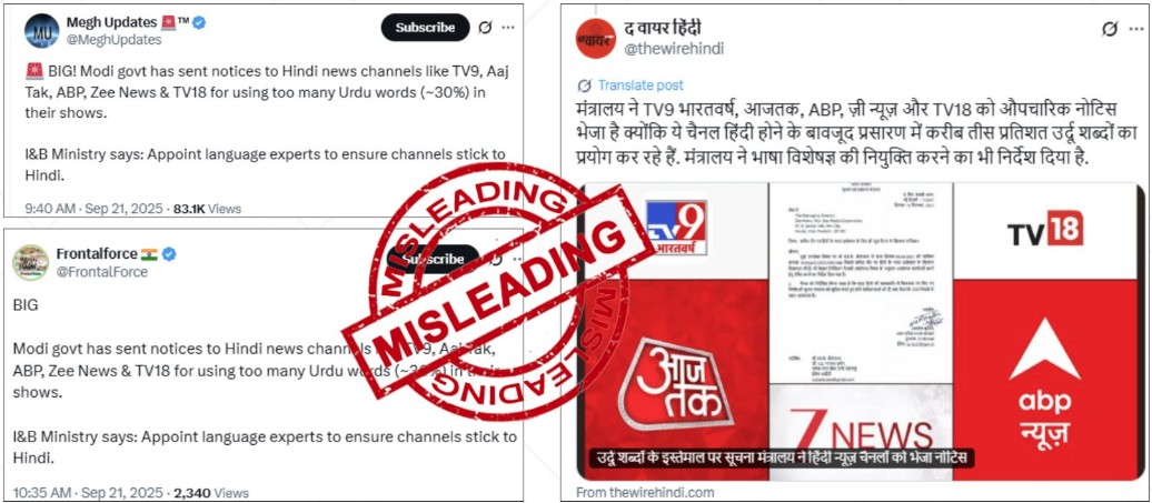 حیدرآباد (دکن فائلز) ہندی نیوز چینلس کو اردو الفاظ کے زیادہ استعمال پر نوٹس دینے سے متعلق خبر پر وزارت اطلاعات و نشریات نے وضاحت دی ہے۔ وزارت اطلاعات و نشریات نے ان دعووں کی سختی سے تردید کی ہے۔ مزید پڑھیں
